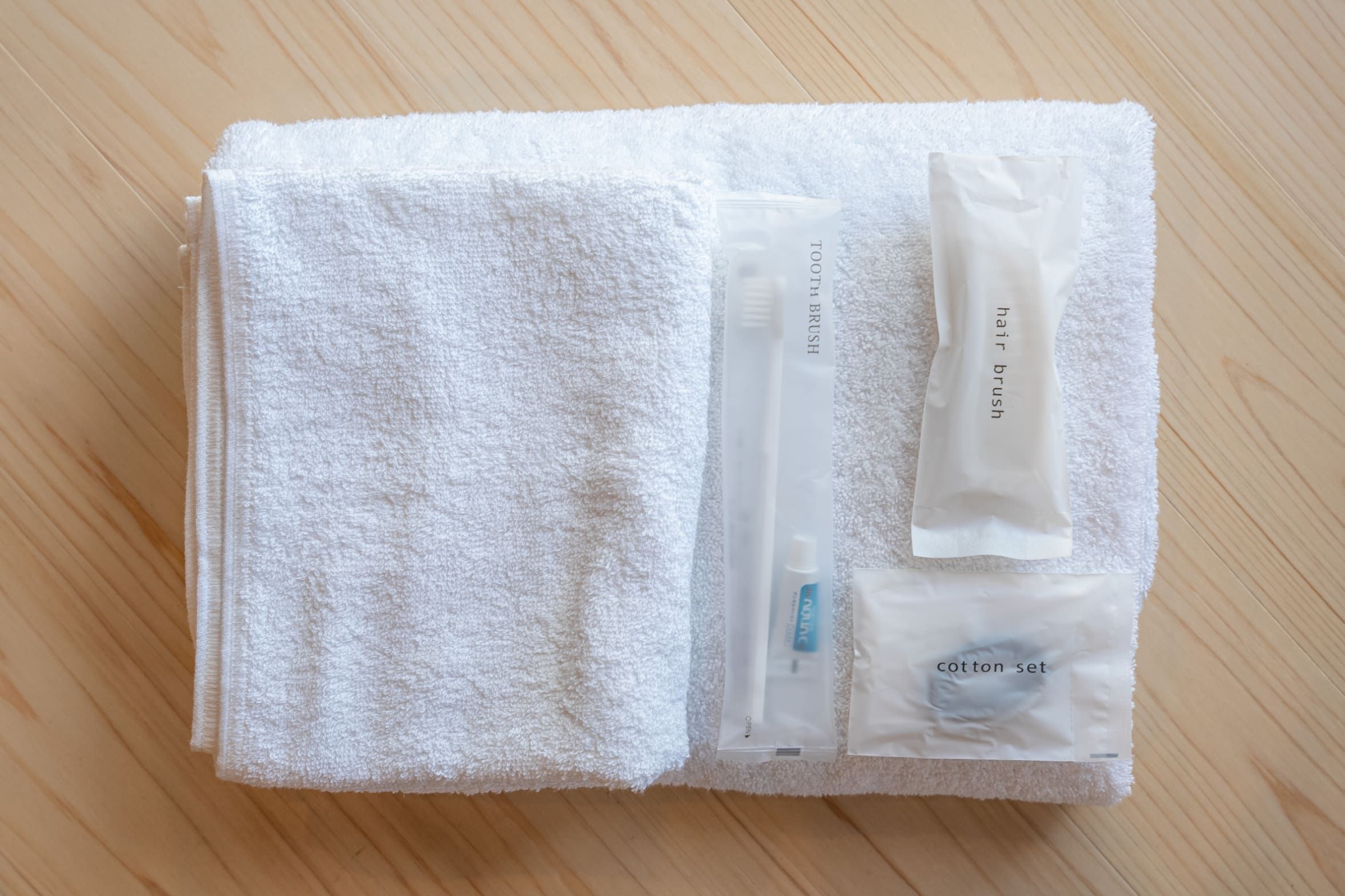 ご宿泊される人数分のバスタオル/フェイスタオル/歯ブラシ/コットンセットがございます。